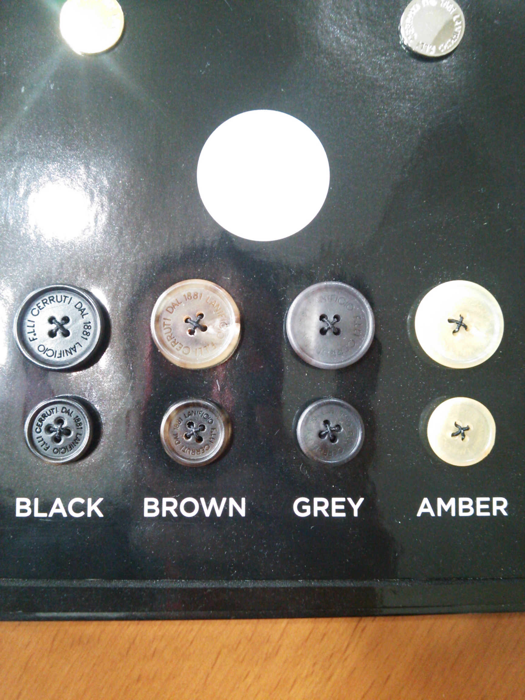 非常にレアなチェルッティの刻印入りの水牛釦をサービスいたします。