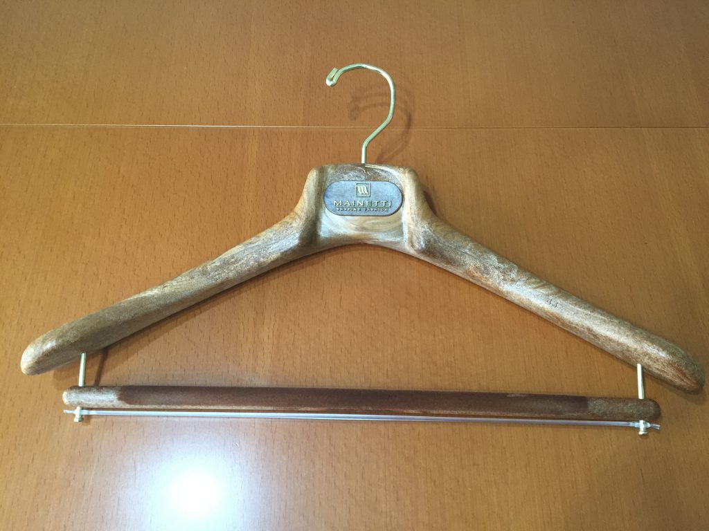 ちなみに、ボクのところでお仕立ていただいた時のスーツのご納品用の簡易ハンガー。