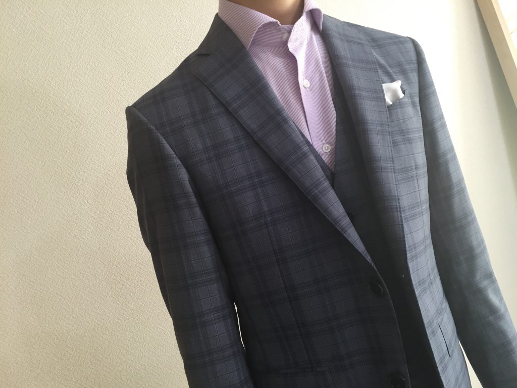 上質なグレイベースのチェック柄を採用し、重くなくそして遊びでもなく、そしてスリーピースにすることによって、誠実さも表現しています。