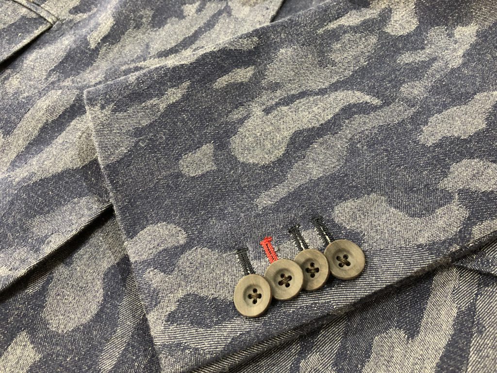 - 袖口の切羽に施すカラーステッチは大人のお遊び