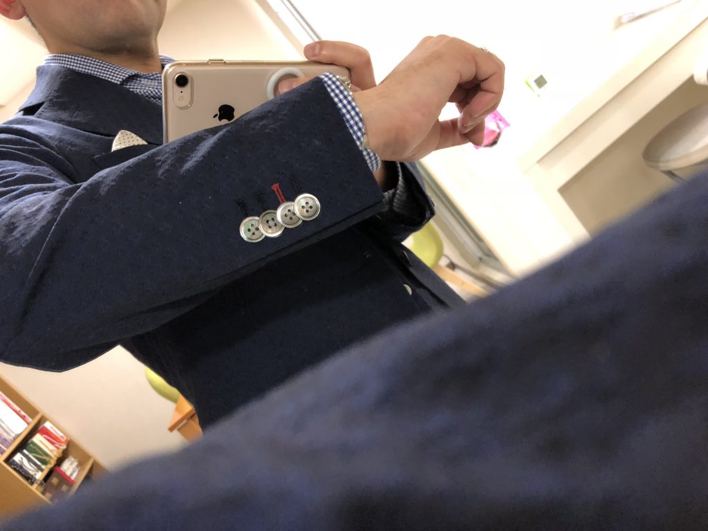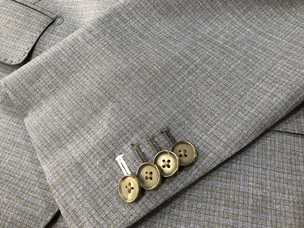 スーツやジャケットの袖口には普通ボタンを付けます。