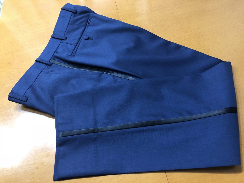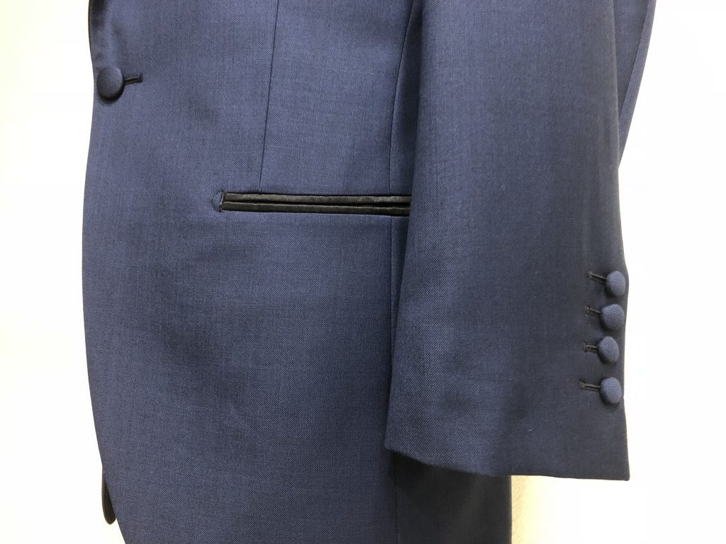 今回はネイビーブルーのタキシードの逸品がお仕上がりいたしました。