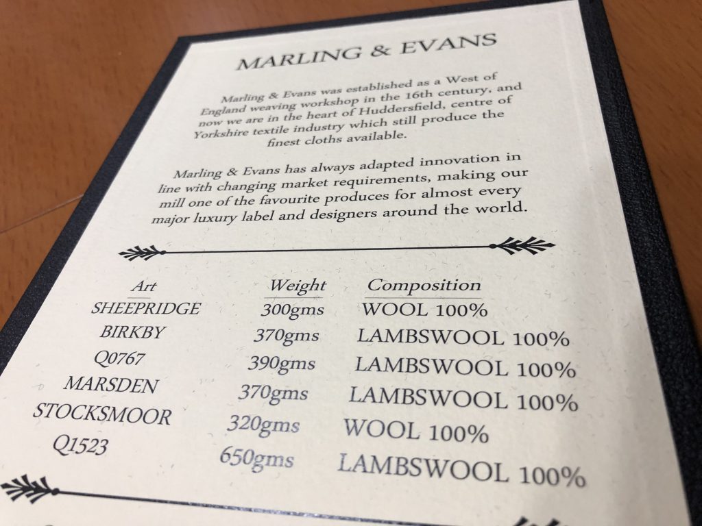 マーリングエバンスもその流れで生まれ、1960年以降の現在は織物の聖地であるハダスフィールドで織り上げています。