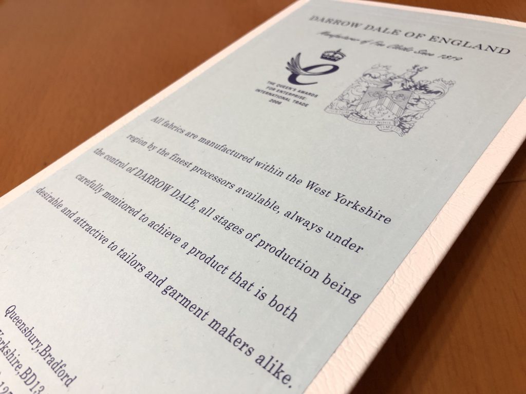 英国のヨークシャー州のブラッドフォードという地区(ハダスフィールドの隣町で近代織物の名産地)にある大型のミル(機屋)に毎回色柄も指定しています。
