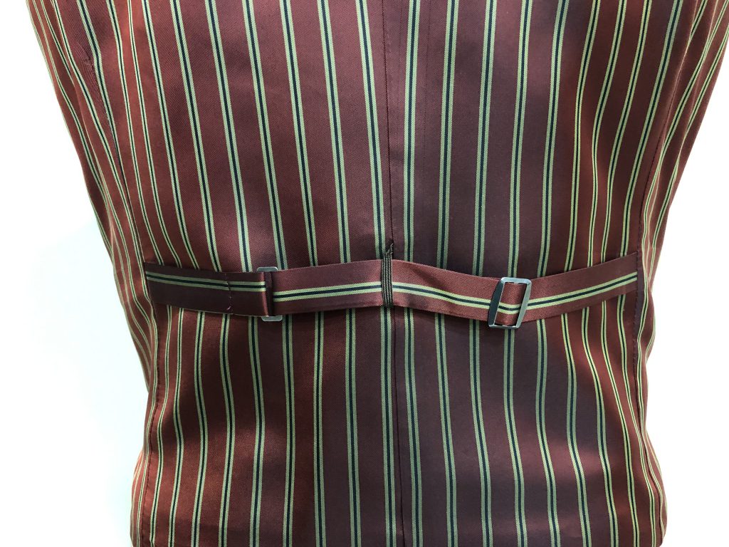 既製品の場合は汎用性を持たせるために少し大きめにして、絞れるように設計されているものもあるかと思いますが、オーダーメイドの場合は機能としてではなく、背中のアクセントとして付けるかどうかってくらいのパーツです。