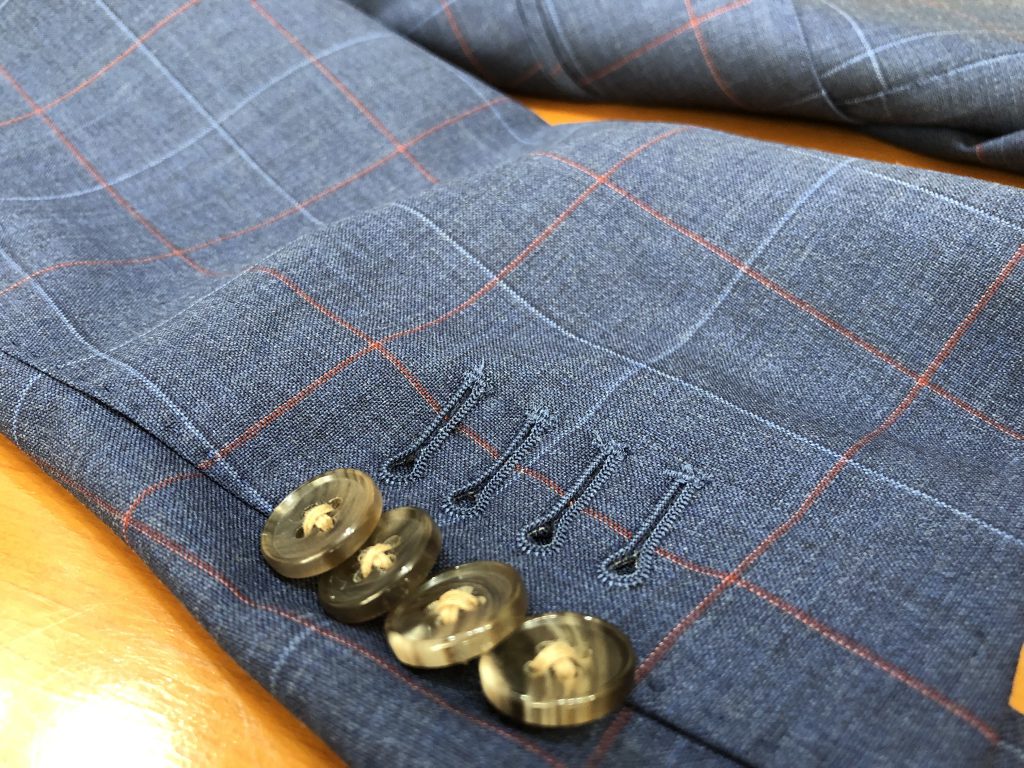 Tさまの袖口に対するこだわりは強く毎回特別仕様に致しますが、今回はオーセンティックに重ね四つボタン仕様でセット。