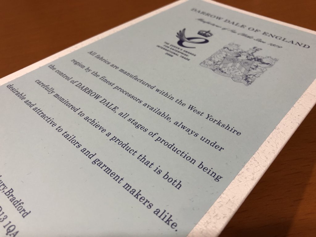 英国産の生地というのはイタリア産と違って結構まとまりがなく、産地も特色も特徴も様々なモノが多いですが、その中でも基準となるのはやはりタテヨコ双糸使いという丈夫さでしょう。
