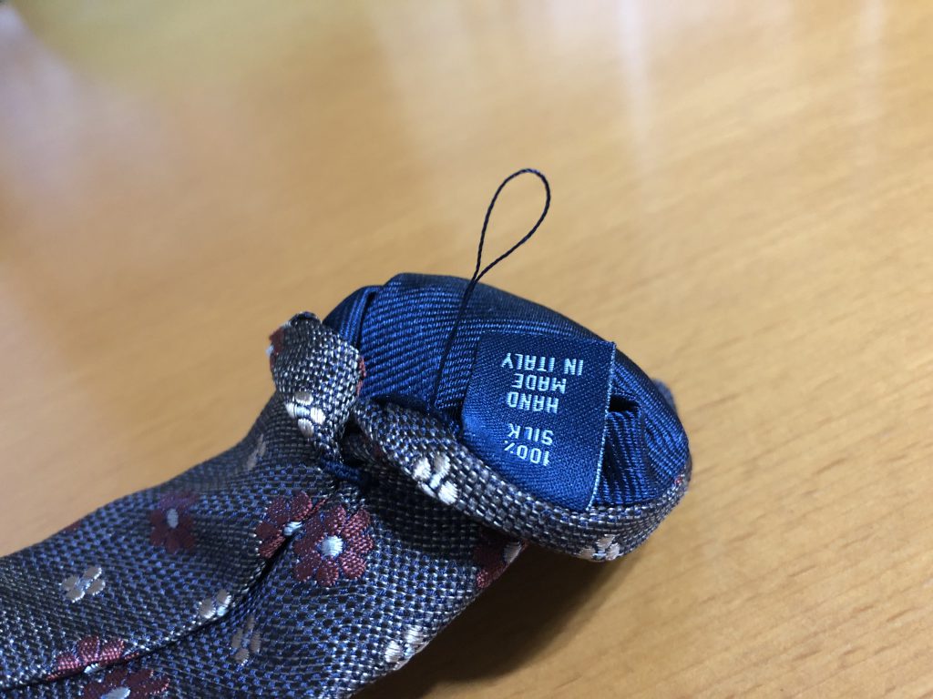 ネクタイをペロッと裏側をむいてみると、品質表示があると思います。