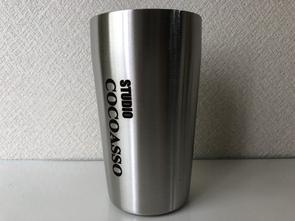 ココアッソ刻印入りの真空断熱タンブラー