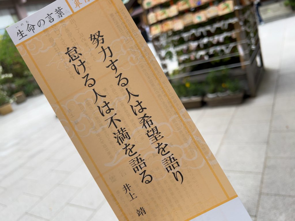 で、そこで頂いたチラシと言いますか、今月の言葉のしおりが心にしみました。