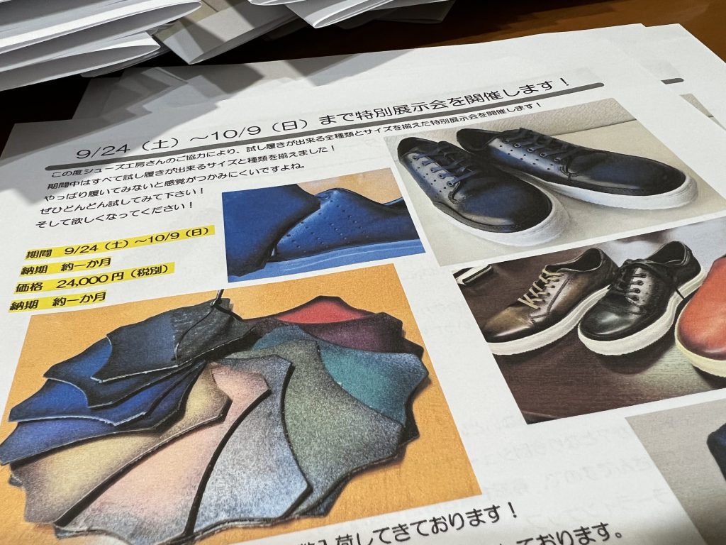 ココアッソ初のオーダーメイドレザースニーカーの全サイズプラスアルファをスタジオにてラインナップする特別展示会を開催致します。