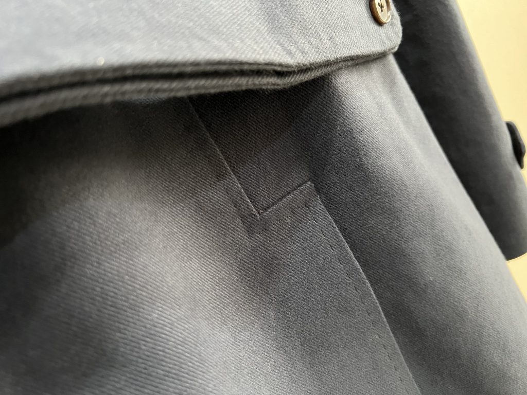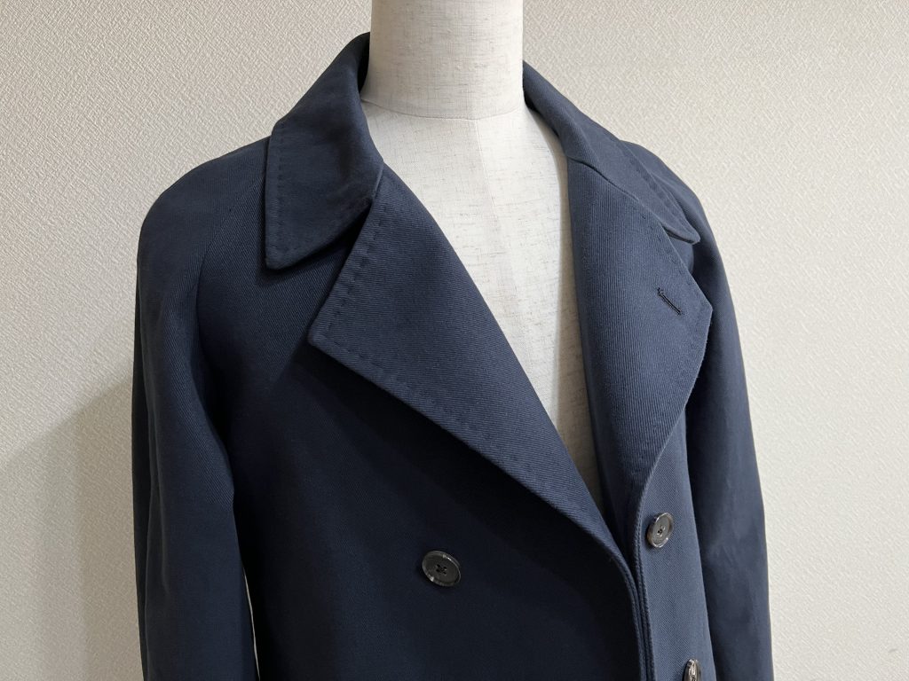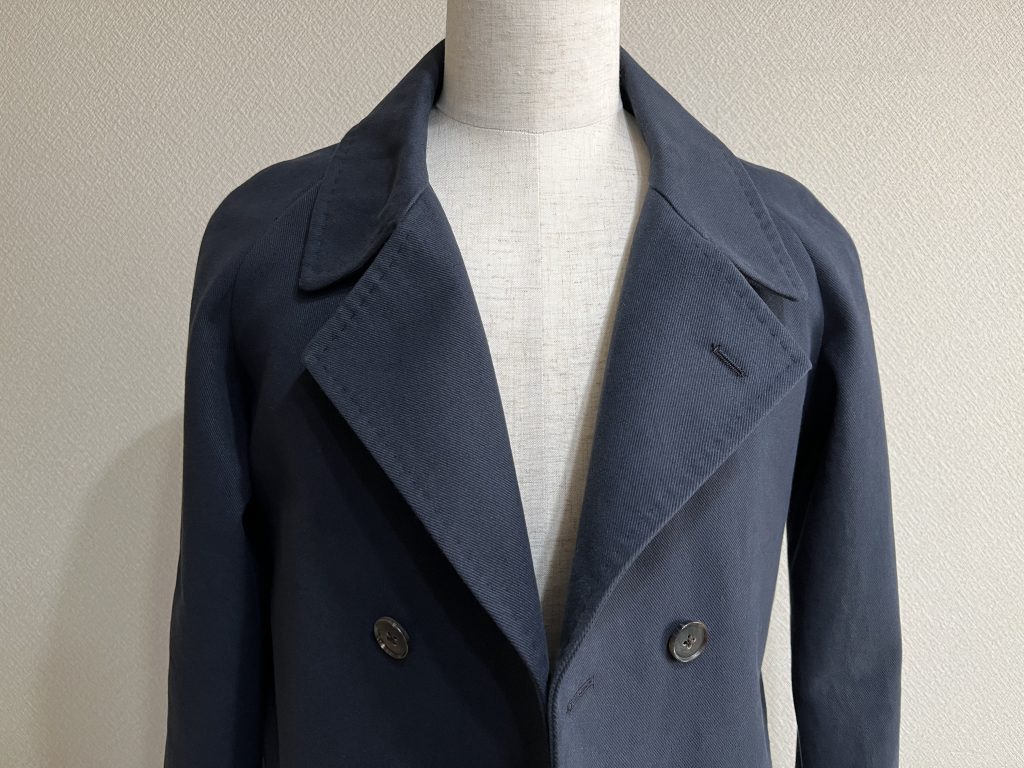 コートの袖付けの基本的な仕様の一つにこの方法があります。