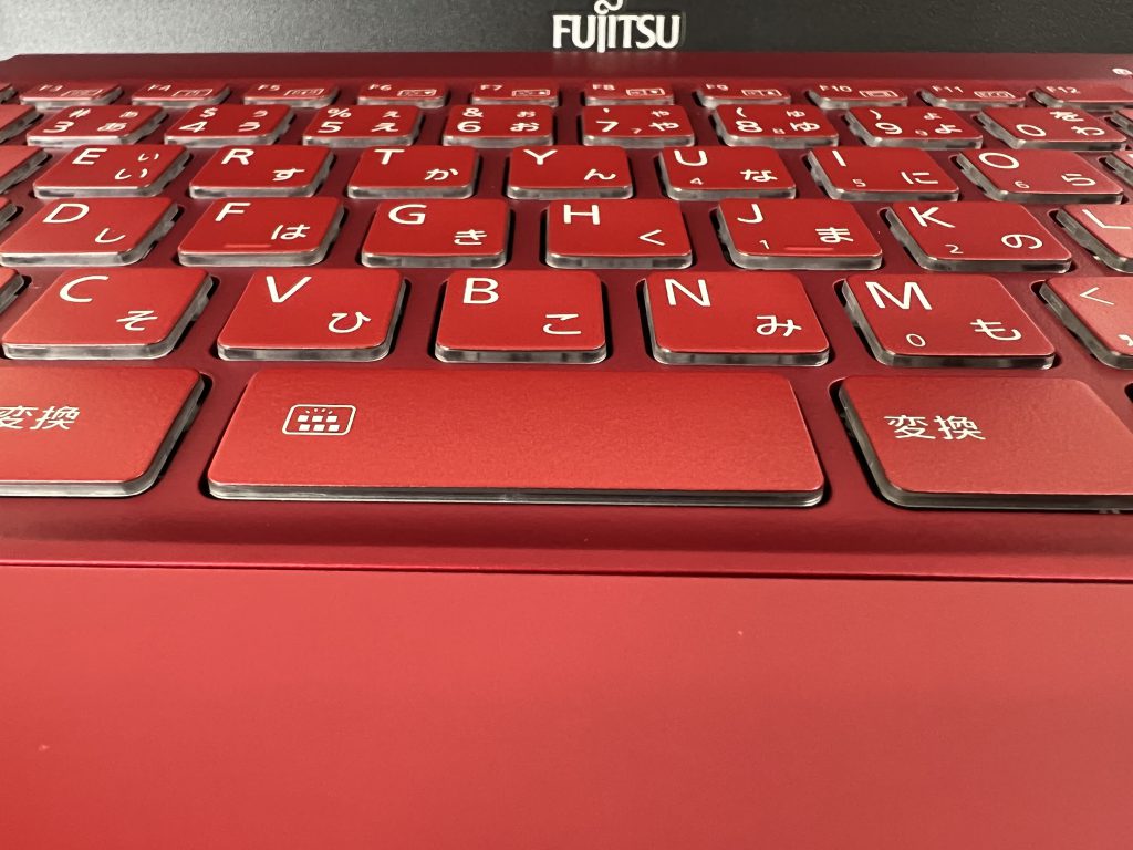 富士通のPC特有のくぼんだキーボードはよりそのくぼみが感じるようになっています。