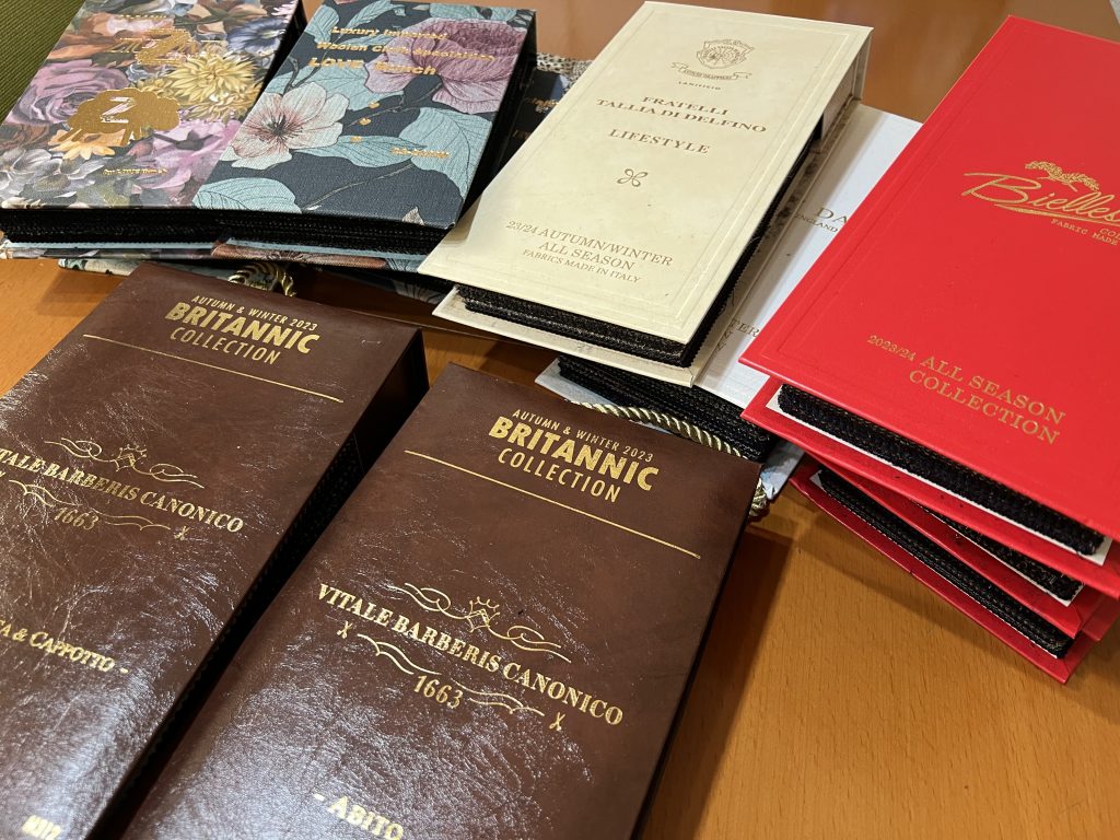 今年は生地屋さんも動きが早く、すでに秋冬物のコレクションは準備万端です。