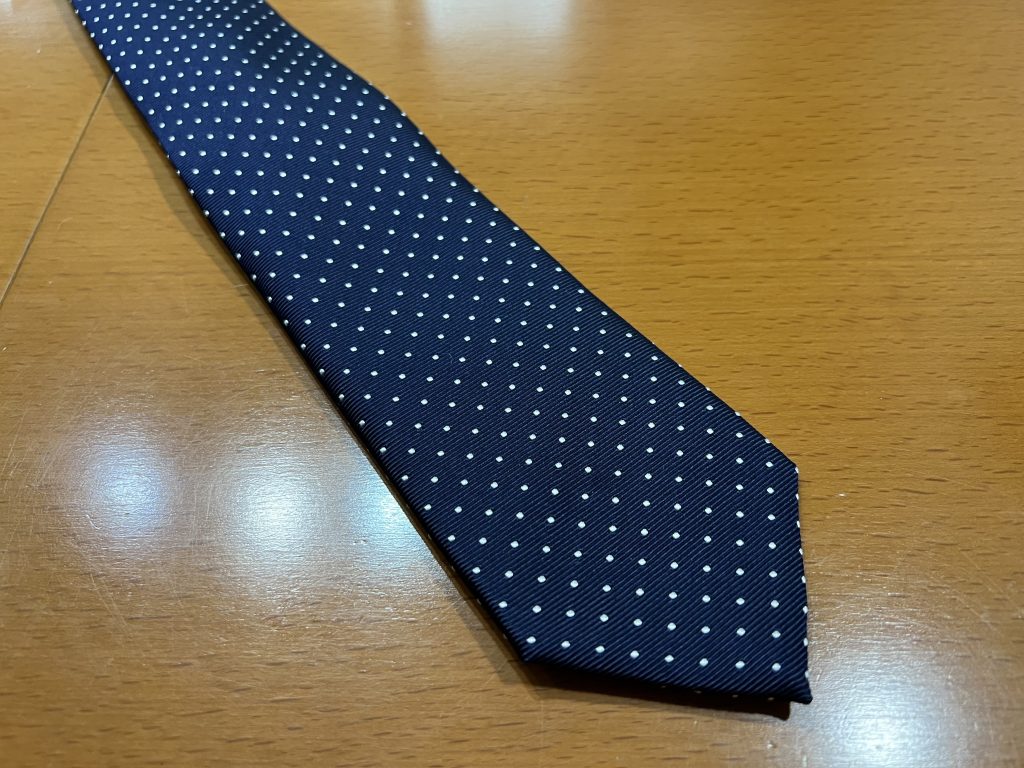 そして、そのパーツの性質上決まりにくいネクタイもあるんですね。
