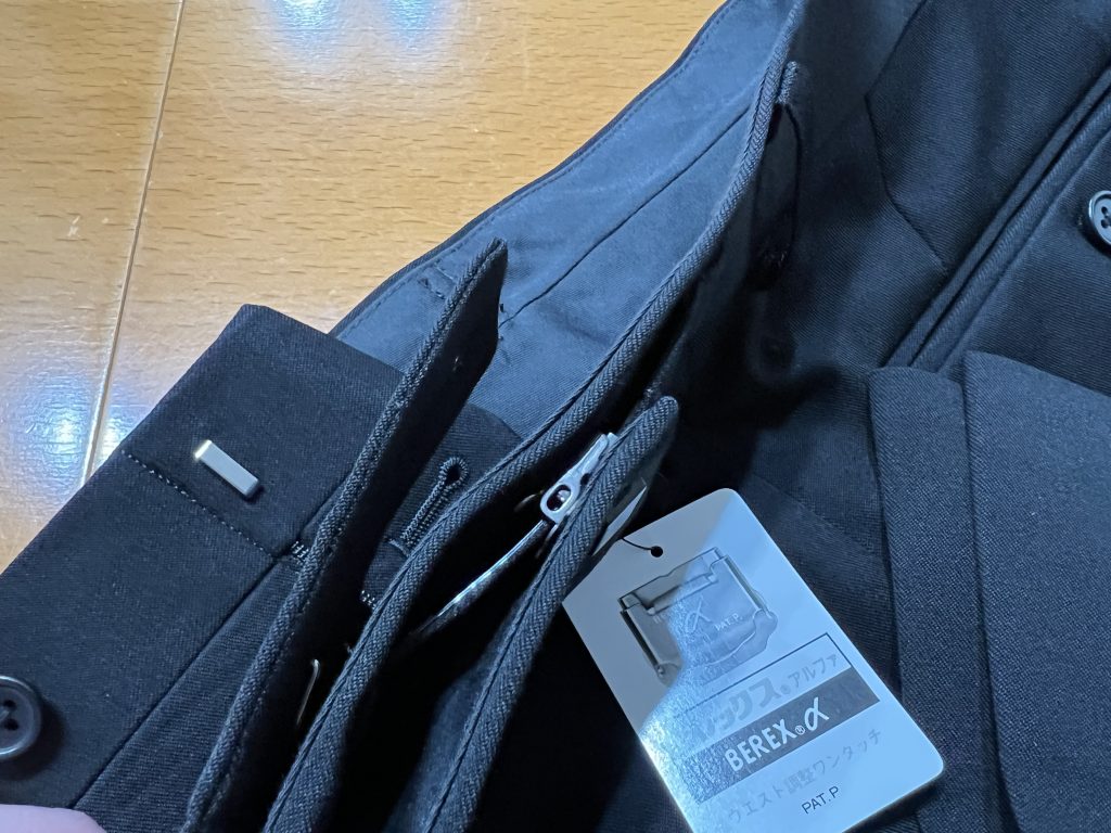 それがタイトルの通り、オーダーメイドでもパンツのウエストを自分で簡単に調整出来るアジャスターを取り付けることが出来ます。