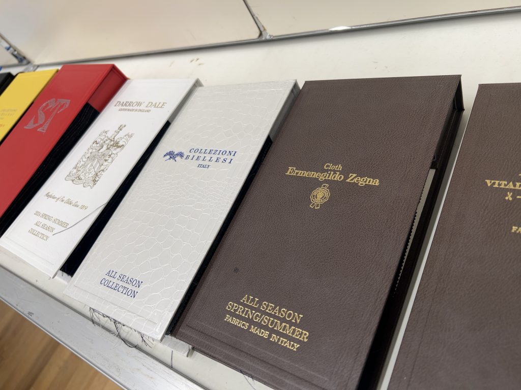 現代のオーダースーツの主流はバンチブックというサンプル帳にて生地を選ぶ時代になっています。