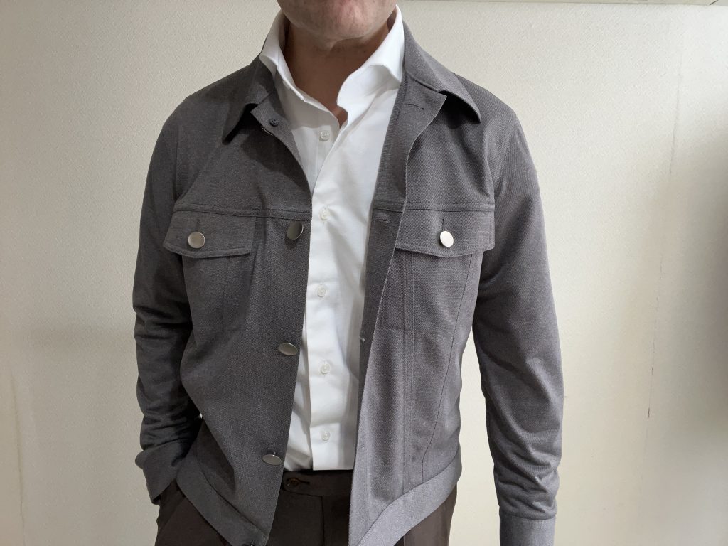 またウールのホップサックと呼ばれるメッシュ素材だとちょっとデリケート過ぎちゃいますし、ラフに羽織るイメージから逸れてしまいます。