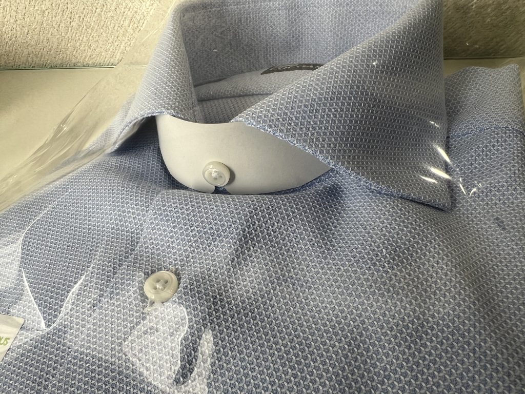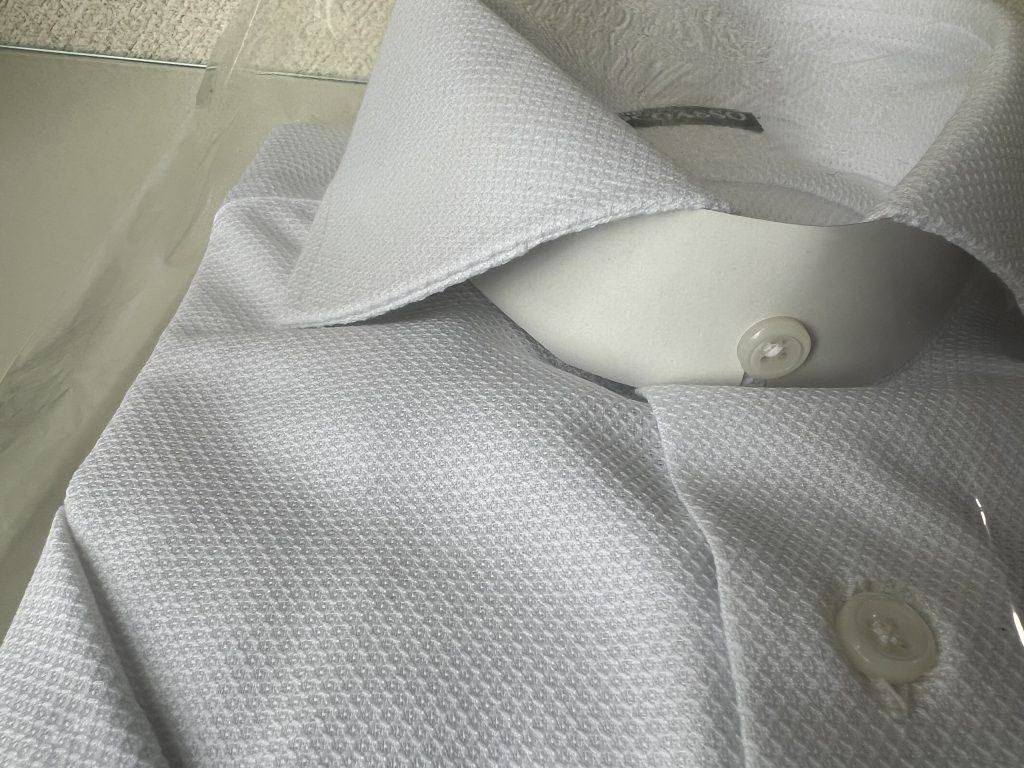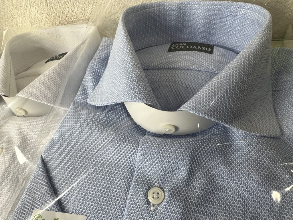 このカラミ織りという生地は夏向けの生地でして、その独特な織り模様でとても通気性が良く、蒸し暑い日に最適なシャツ素材です。