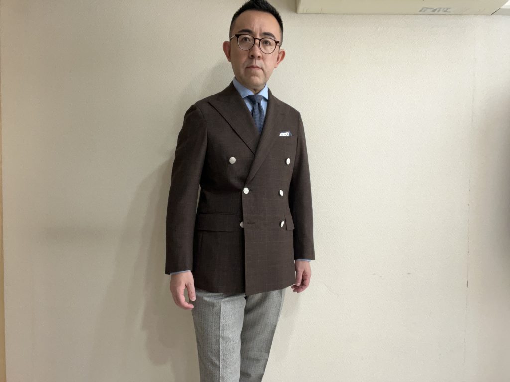 ボクの体型がそもそもこのなで肩で前肩ですから自分が一番着やすいジャケットを追い求めて完成したシルエットです。