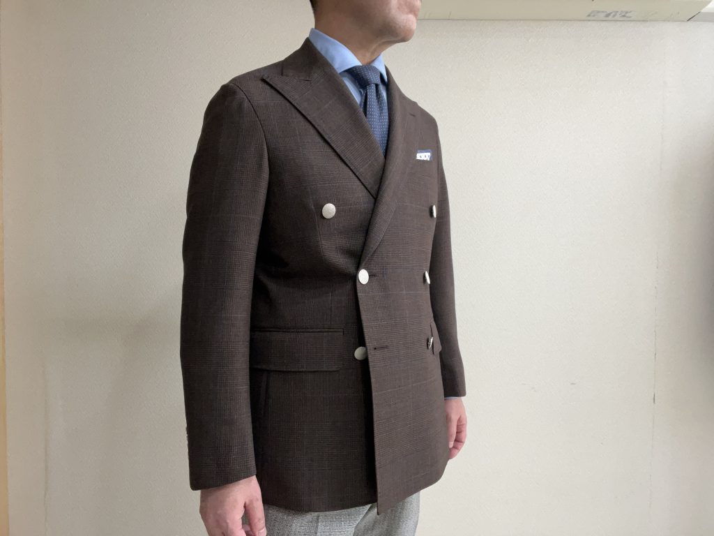 ほんの少しの遊び心は取り入れておりますが、あくまでも正統派の着こなしが出来るようなジャケットにしています。