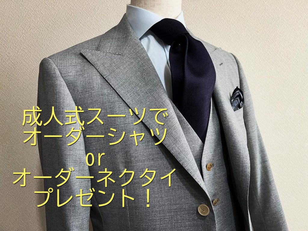 オーダースーツご注文でオーダーシャツorオーダーネクタイをプレゼントいたします