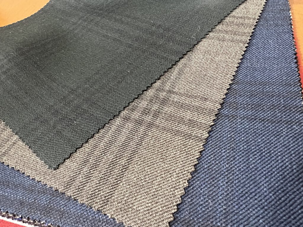 Super100’sのメリノウールを使用した艶のあるサージ素材がメインコレクションとなり、少し軽くしたオールシーズン生地もラインナップしています。
