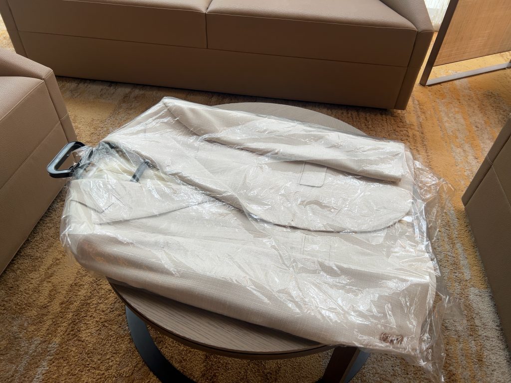 ココアッソではスタジオでお納めさせていただく際にはこのビニール袋は外してテーラーバッグにてお渡しをしています。