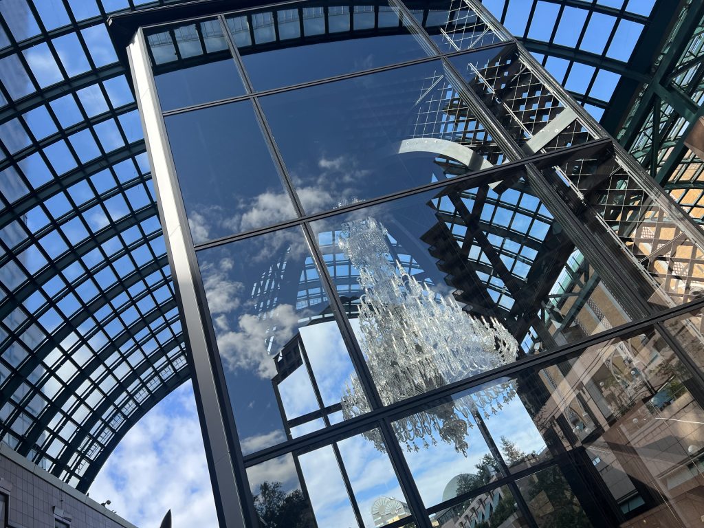 そして今はクリスマスに向けて毎年恒例のバカラのシャンデリアが設置されています。