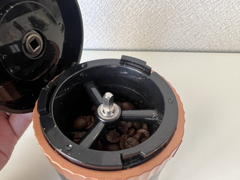 かなり硬い浅煎り豆を投入してもバリバリと挽いてくれます。