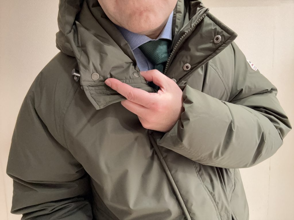 唯一気になるのはその時にジップの先端をカバーする布地がないのと、スナップボタンがむき出しになっているので、微妙に顎に当たって冷たい時がある。