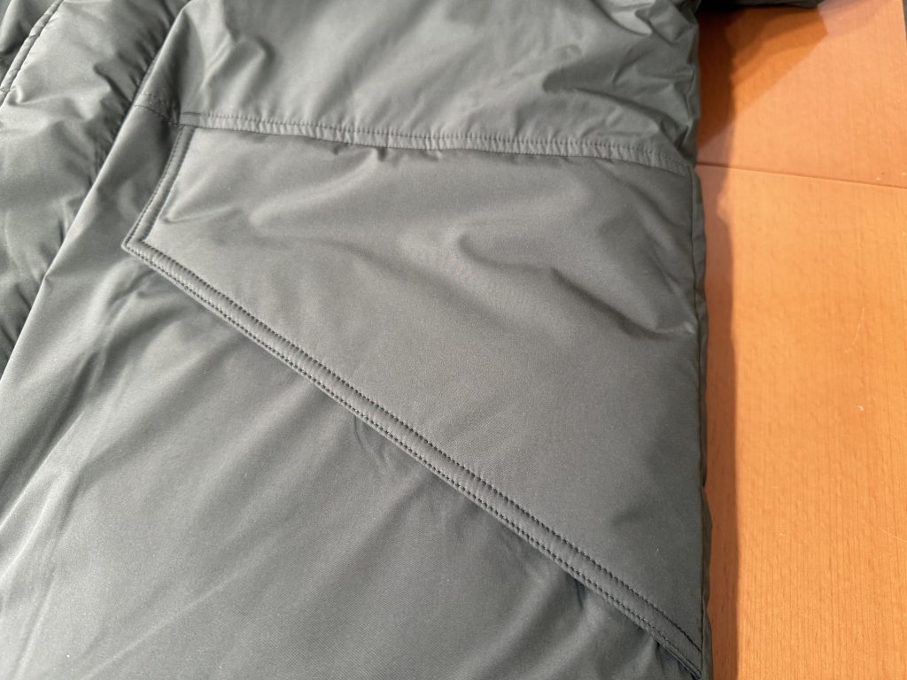 ですが裾口あたりの内側はダウンが膨らんでしっかり密閉しているのでそこから冷気が侵入してくるような感じはしません。
