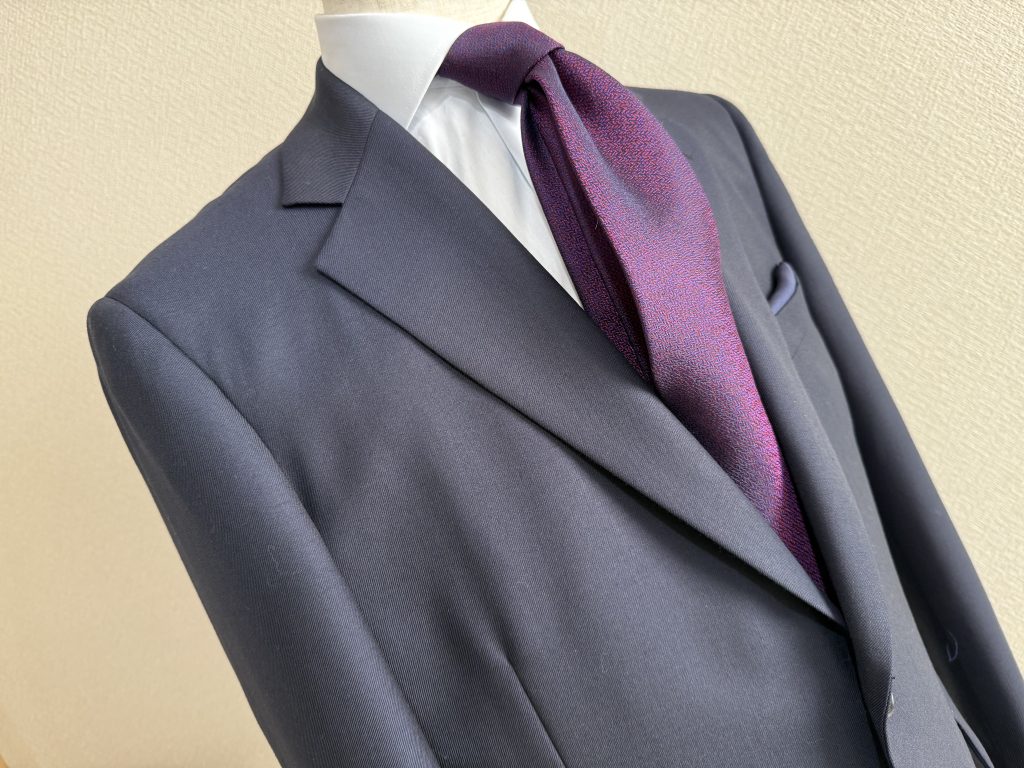 普通のネイビーを少し華やかな色に変えるだけで印象は変わります。
