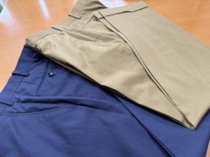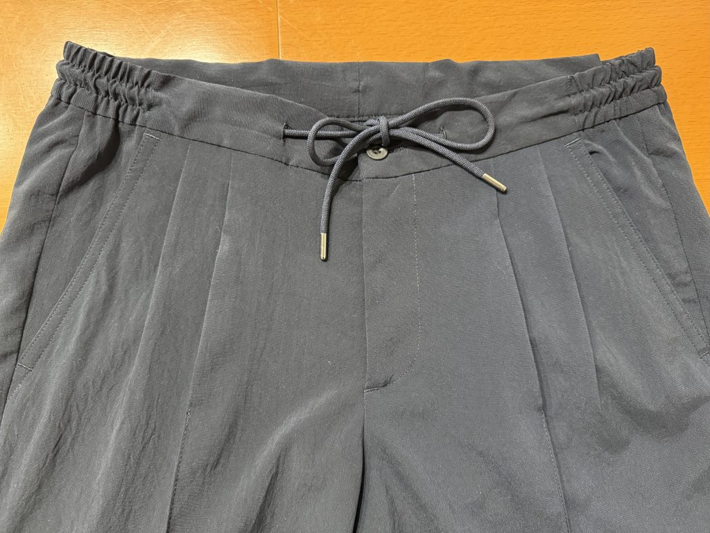 ・パンツはベルトレスのウエストゴム入り、ドローコード付き(タックの有り無しは自由に設定可能)