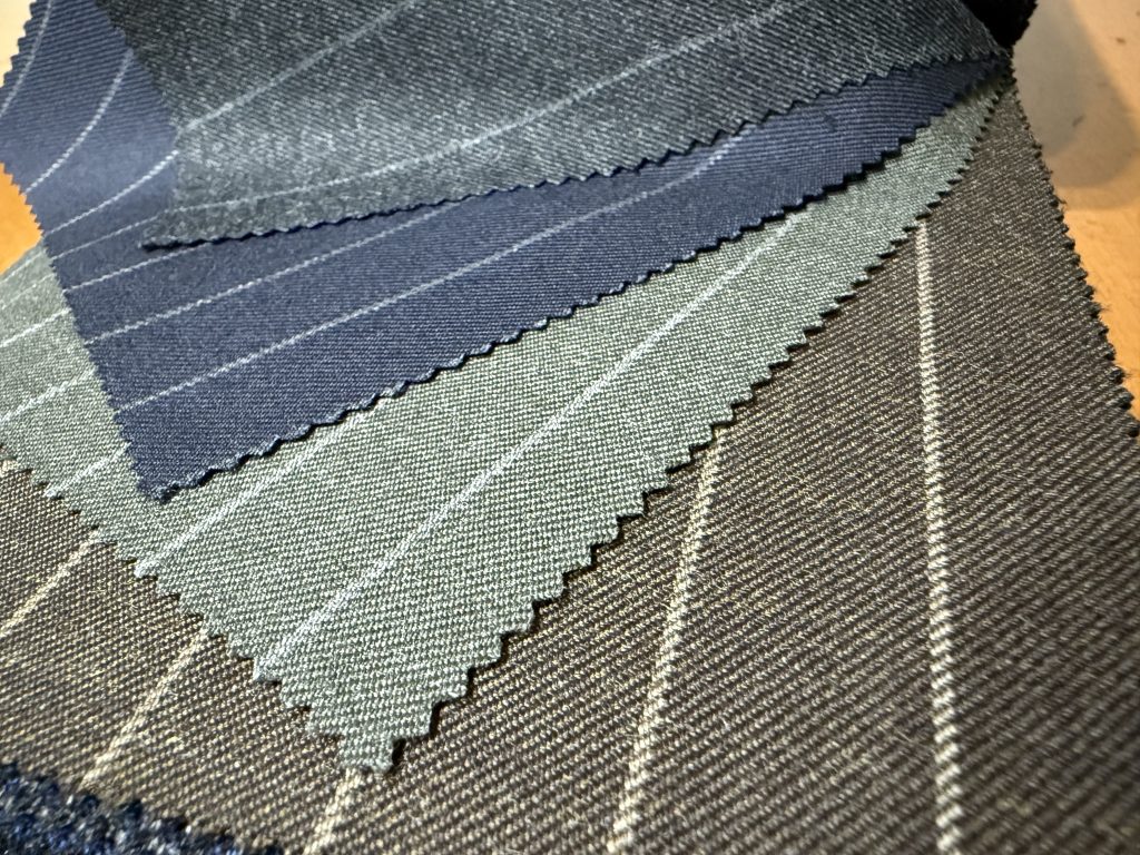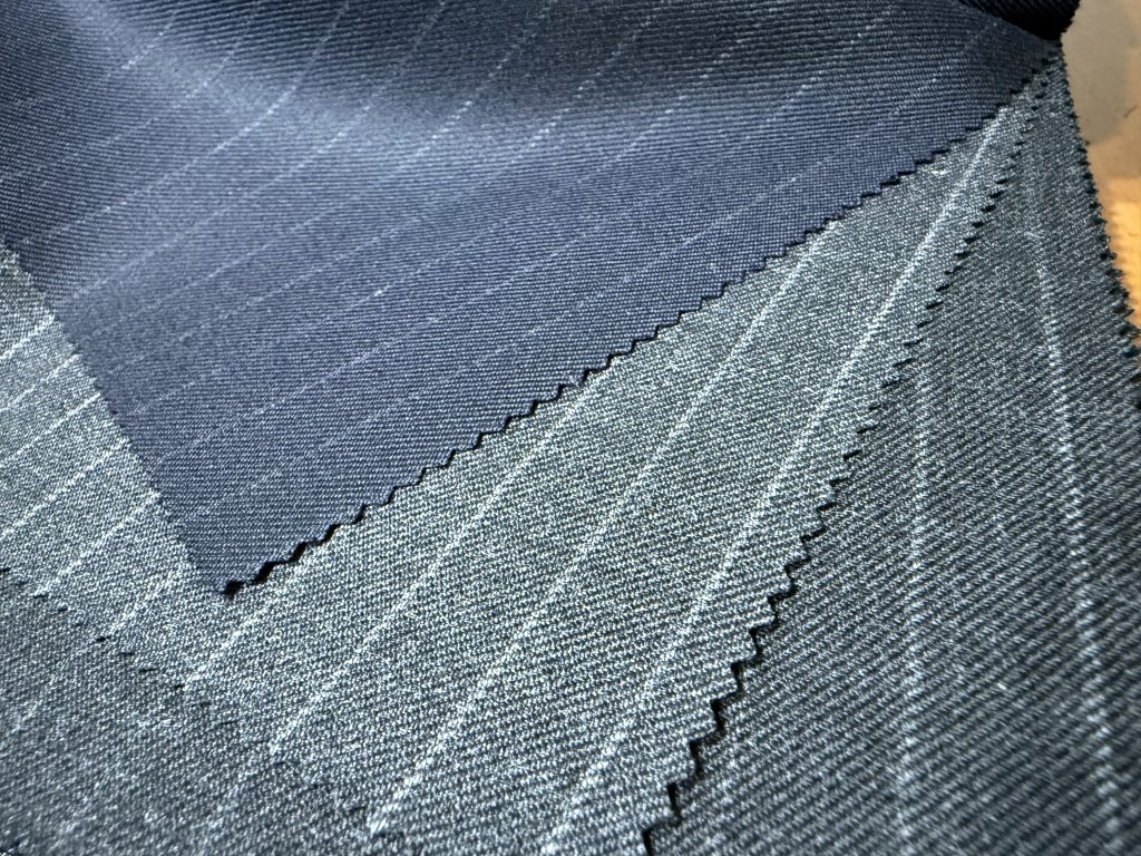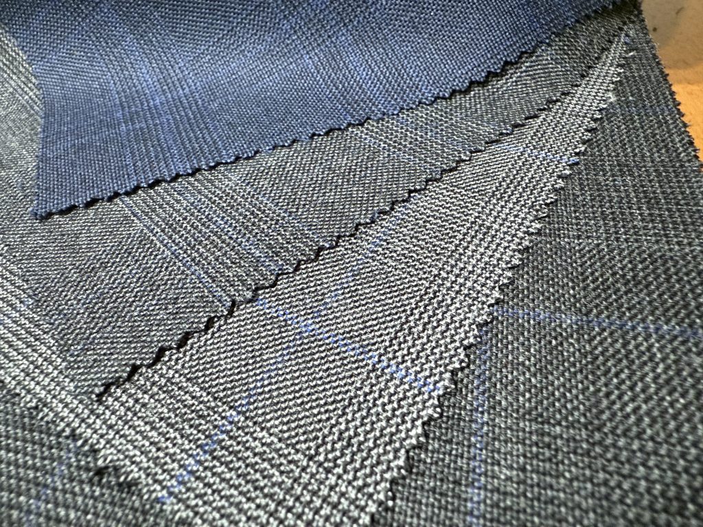 イタリア産のドレープ感のある軽い生地とは違って、しっかりと打ち込まれたコシのあるこの服地は英国そのものです。