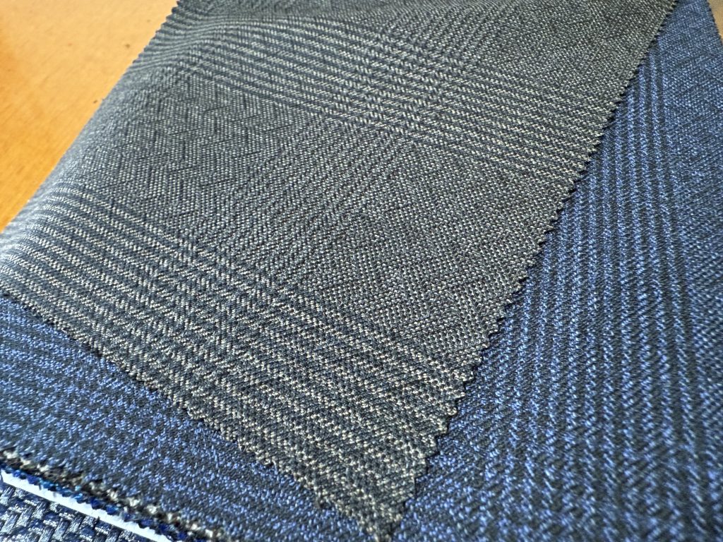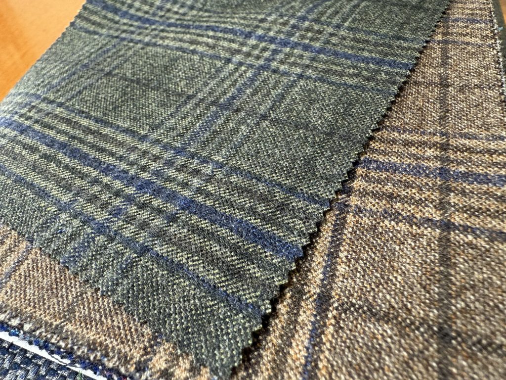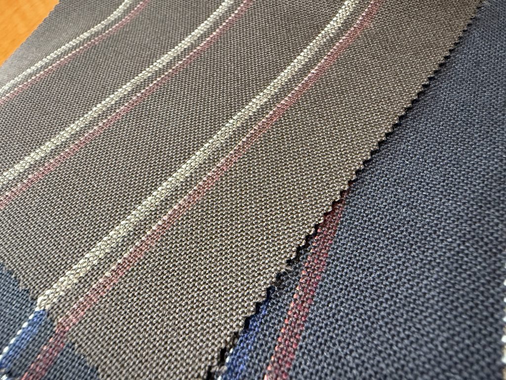 今回の秋冬コレクションはスベリの良いサラサラした親織り生地を中心にフラノ、サキソニーといった毛足のある暖かみを感じる生地、定番の表裏が違う色に見えるソラーロ、さらにはウィンタートロピカルという平織りまでラインアップされています。