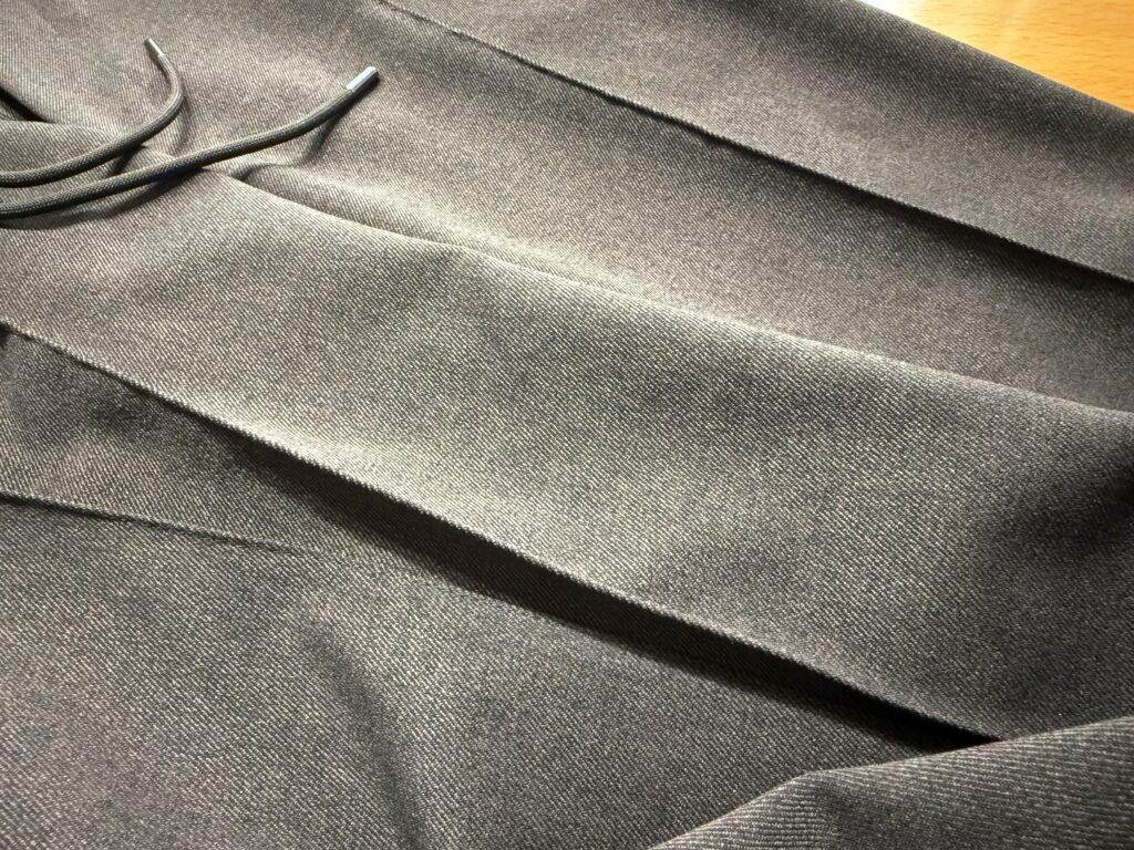 そしてベルトをしないのであればサイドにゴムを入れて伸縮性を持たせることも出来ますので、すこぶる快適です。