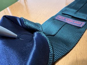 ネクタイの裏側でピヨッと出た糸は切らないでくださいね!